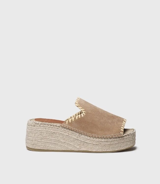 Sandales en croûte de cuir avec plateforme en jute de 7 cm. La semelle intérieure en cuir et la base en caoutchouc antidérapante offre une démarche douce et agréable.